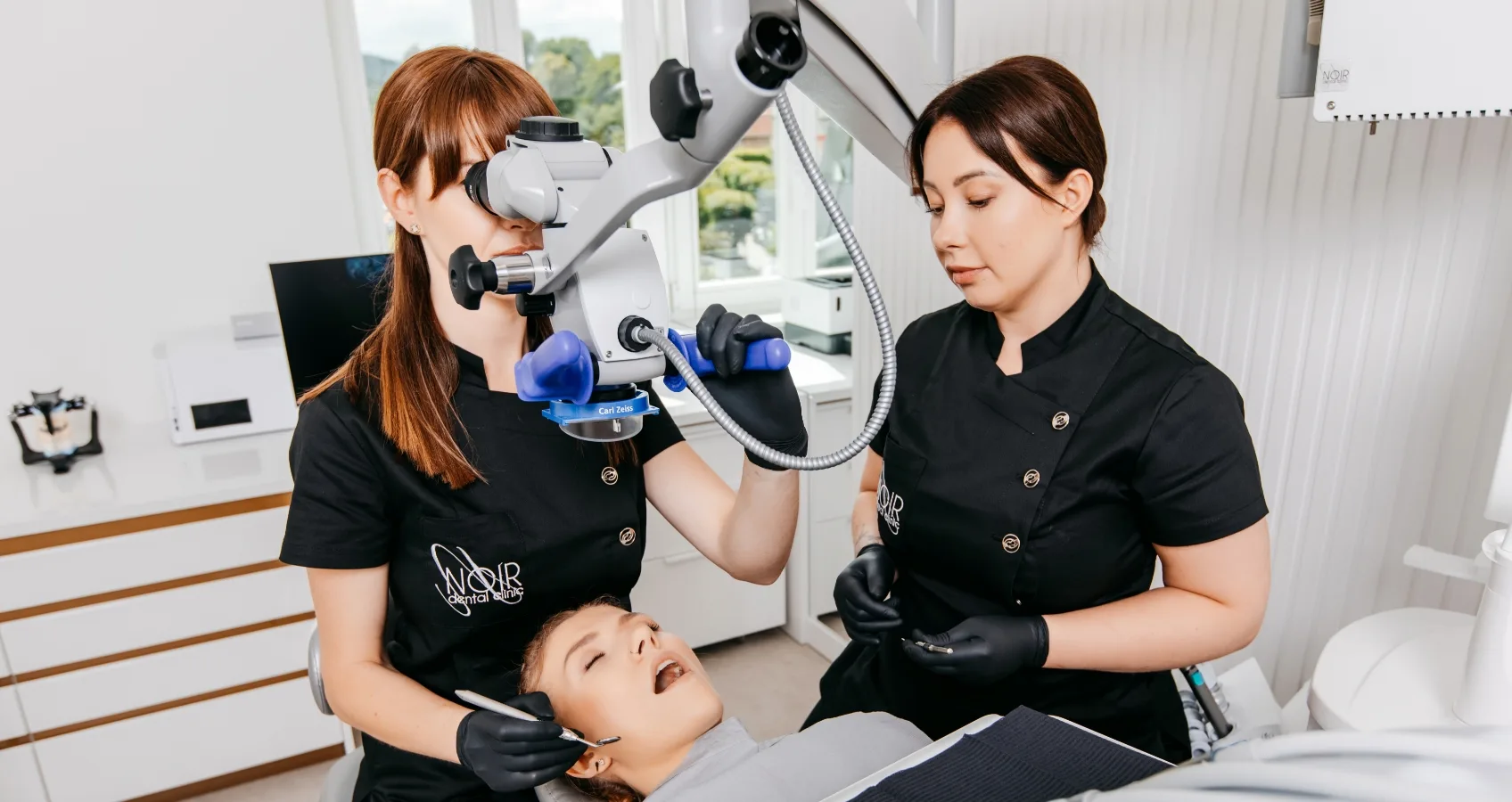 Mając odpowiedni dostęp do uszkodzenia przeprowadziliśmy niezwykle precyzyjne leczenie kanałowe pod mikroskopem i wzmocniliśmy ząb wkładem koronowo-korzeniowym.
